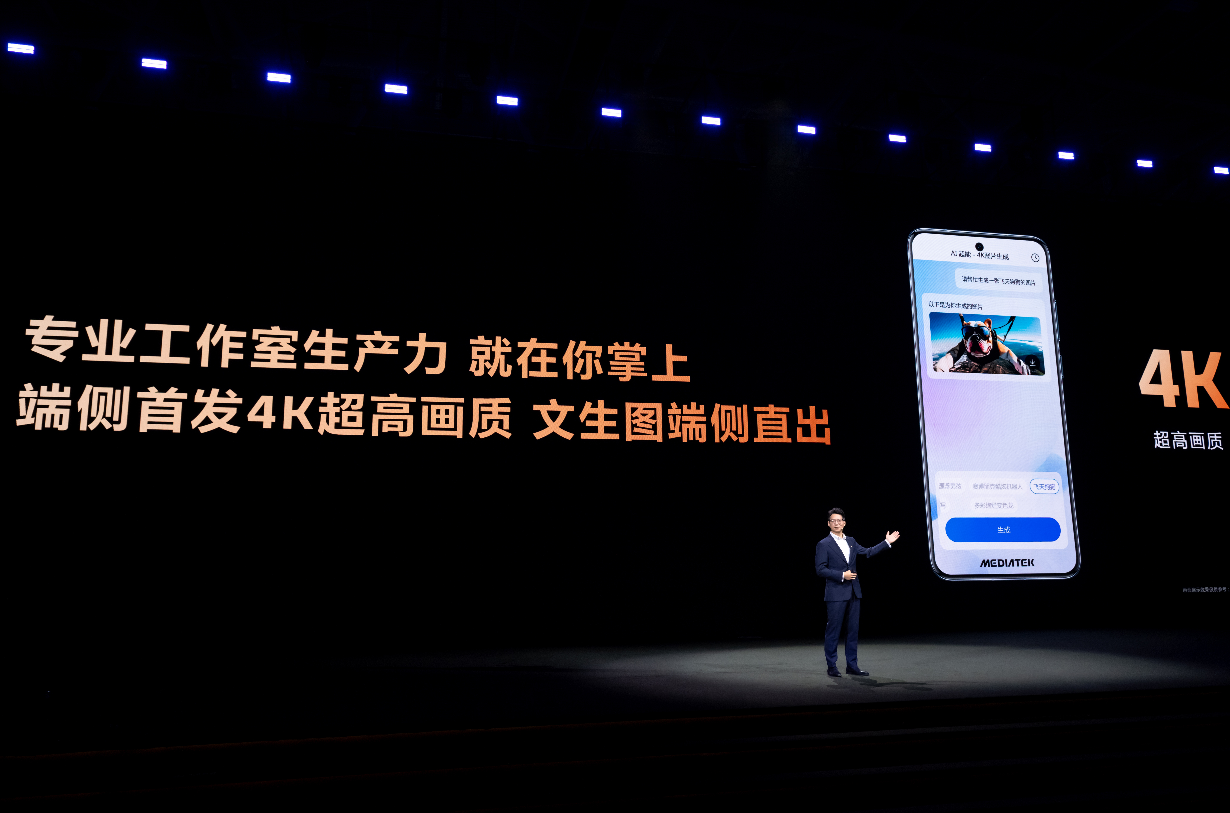 强大的双NPU,让一系列过去只存在于PC或云端的前沿AI技术在端侧全面落地,推动AI体验从“能用”到“好用”的质变。端侧更强的生产力,从此可以“一次搞定”:业界率先实现的4K超高画质图片生成成为可能,堪比专业工作室的生产力就在你手上;端侧长文本能力大幅提升,支持128K字元(相当于10小时录音)。一整天的会议记录,天玑9500一次处理就搞定,一次输出就更准。