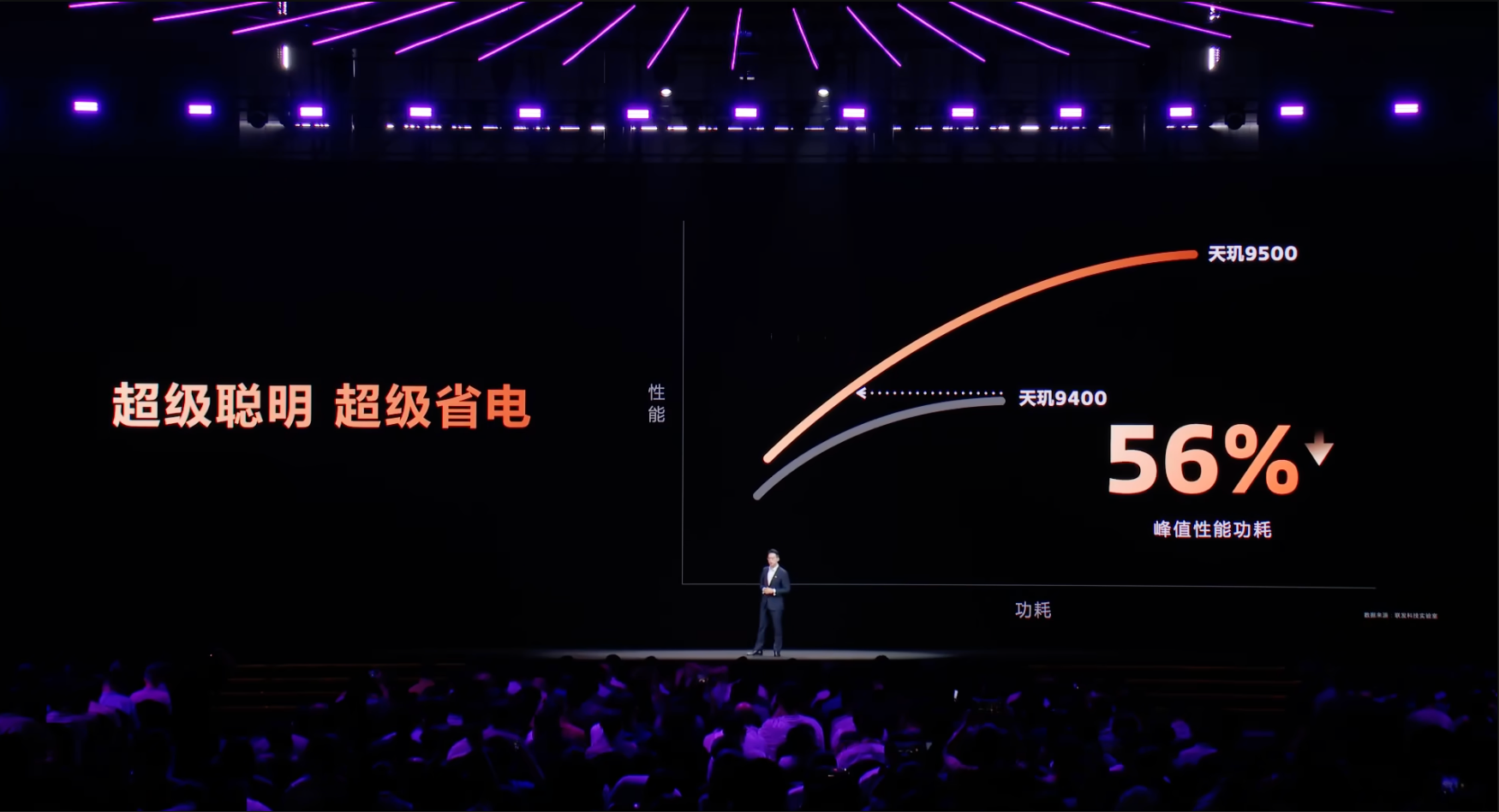 更令人惊叹的是,在性能翻倍的同时,其峰值功耗相较天玑9400大幅降低了56%!“性能翻倍,功耗减半”,这背后是全新升级的生成式AI引擎2.0,它面向Transformer和大模型运算提供了先进的专用固化电路和内存压缩技术,让端侧AI运行更快更省电。
