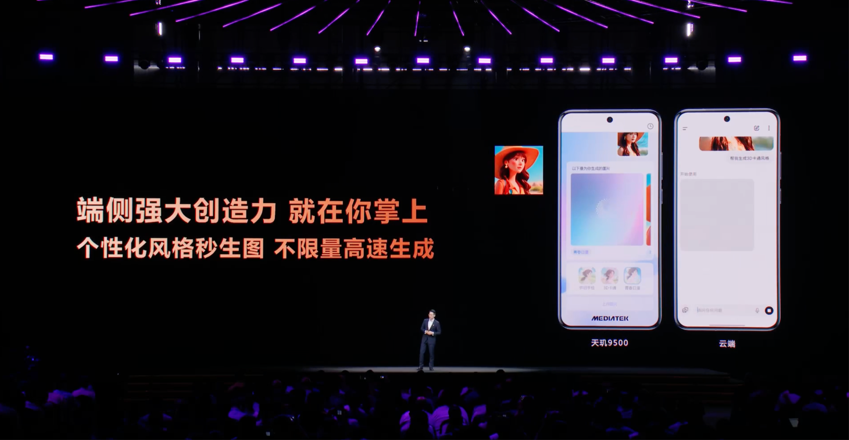 此外,得益于DiT性能提升,天玑9500可支持端侧个性化风格图生图,无限量生成。无论是日漫风还是创意风格,无需云端排队。