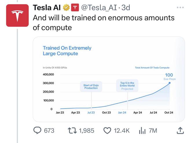 近日,特斯拉AI团队在Twitter上发布了特斯拉定制超级计算机平台Dojo的产品进展时间线,表示该计算机将于今年7月投入生产,到2024年初,Dojo将成为全球最先进的5台超级计算机之一。