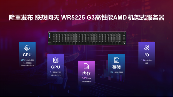 为进一步满足千行百业对于算力多样化、高性能、高扩展性的需求,周韬透露,首款搭载AMD最新处理器的联想问天WR5225 G3即将正式发布。该款全新的服务器秉承了联想服务器一以贯之的“三高一低”特性。