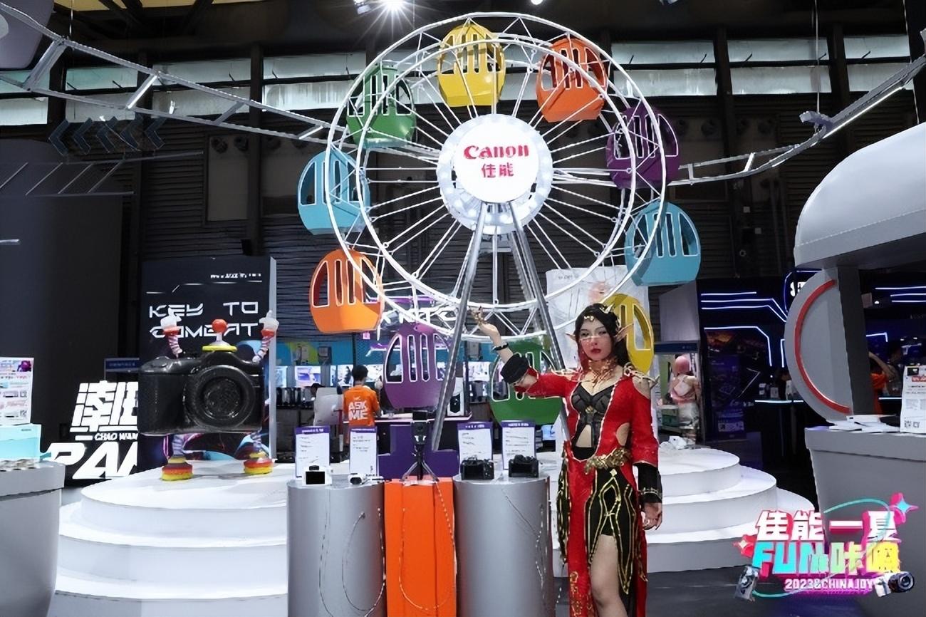 被潮酷模型激起兴趣的参赛者们想进一步用佳能PowerShot V10创作,大家前往在佳能展台核心区域特别设置的缤纷的旋转摩天轮拍Coser。佳能PowerShot V10拥有的19mm超广角镜头视角能将这样梦幻的场景全部收录画面当中,出色的Vlog视频拍摄效果,让参赛者和Coser们沉浸在FUN肆咔嚓的乐趣中。