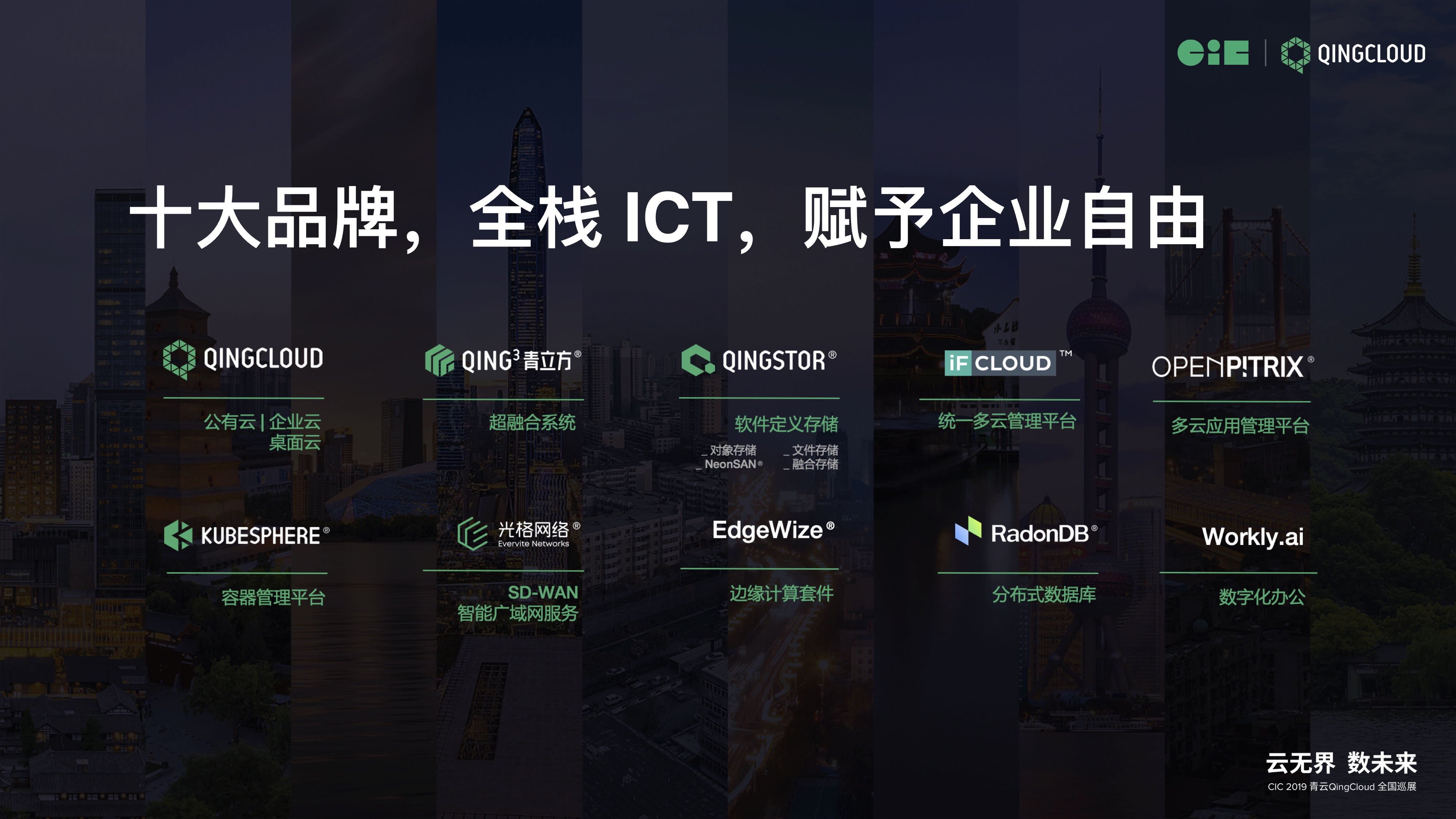 回头来看,2019 CIC云计算峰会上,青云QingCloud所推出的云端IoT平台,以及EdgeWize边缘计算产品,未尝不是青云在数字化转型2.0时期的重要布局。以此,我们也看到了青云已经形成的九个重要产品品牌,这其中包含有云计算、超融合、软件定义存储、容器、多云管理、智能广域网服务、边缘计算等等。