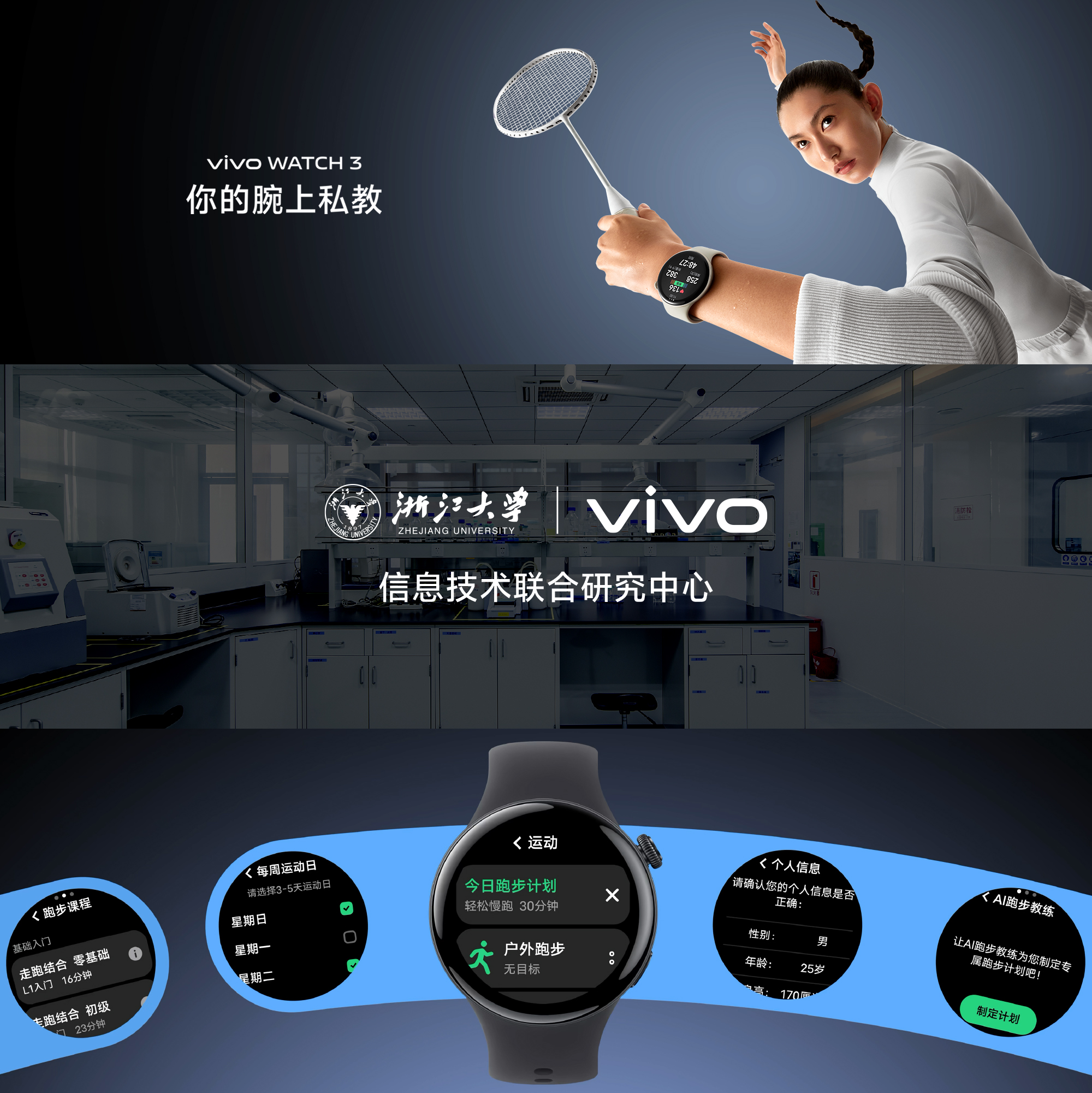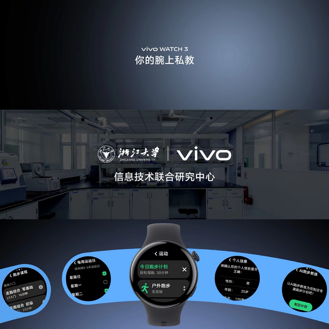 vivo WATCH 3还内置100余种运动项目可供用户选择,通过先进的传感器和算法协作,能够持续精准地掌握运动轨迹,监测运动数据,帮助用户科学高效地进行运动锻炼并提升运动体验。此外,vivo 还与浙江大学开展战略性深度合作,共同推进运动领域的研究。