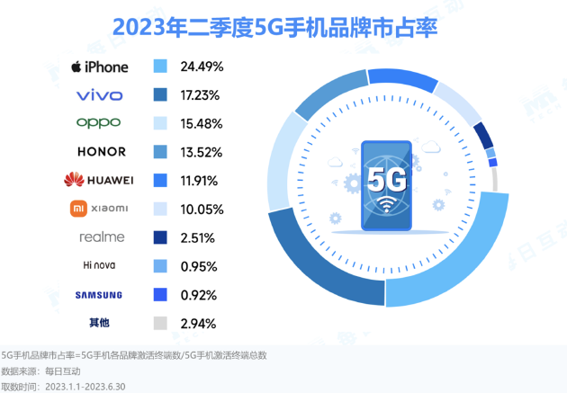 近日,每日互动大数据发布了2023年二季度5G手机报告,揭示了国内5G手机市场的发展情况。