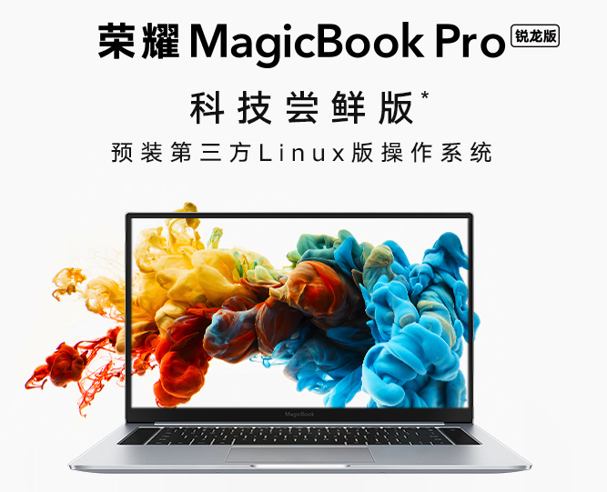 荣耀MagicBook Pro锐龙5 3550H和锐龙7 3750H两款型号都有对应的科技尝鲜版,预装第三方Linux版操作系统, 8GB内存 + 512GB SSD,星河银配色,官方售价分别为4399元和5499元,荣耀超级品牌日价格低至3699元和4899元,享6期免息,限量赠背包和手环,速戳链接预约: