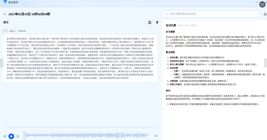 汇报会上,小杨使用浪潮智能助手会议转写功能全程录音并实时生成文字记录,需要时,可以一键生成会议纪要,便于会后对报告内容进行调整。