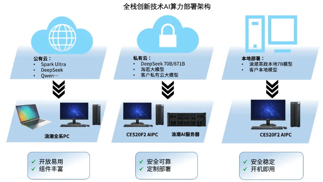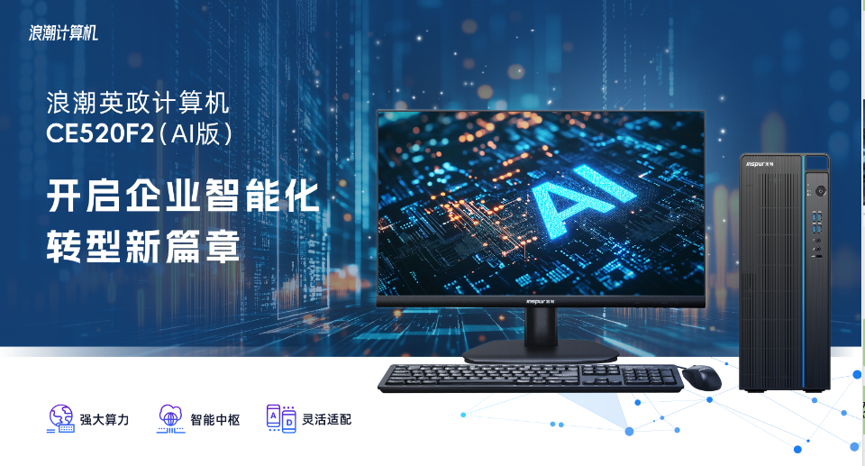 在当今瞬息万变的商业环境中,企业面临着前所未有的竞争压力和效率挑战。传统的运营模式和管理方法已难以满足日益增长的业务需求及市场变化。而人工智能(AI)技术的蓬勃发展为突破效率瓶颈、实现企业跨越式发展提供了全新的解决方案。面对不同的AI应用场景,企业需要不同的算力和大模型方案支持。浪潮计算机全新推出浪潮英政计算机CE520F2(AI版)(以下简称“浪潮英政智能计算机”),该机型是行业首款搭载端侧7B模型的台式机,高达104TOPS的算力为企业提供端云协同架构的定制化AI应用,保障业务安全稳定高效开展。