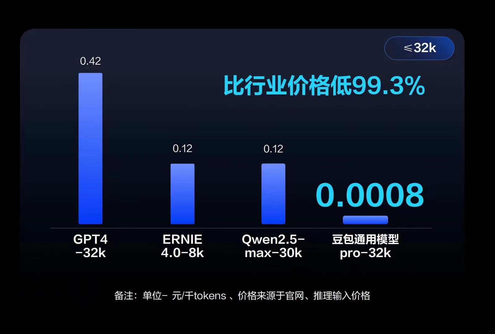 15日,在火山引擎春季 Force 原动力大会上,一张图引发了朋友圈的热议,豆包大模型费用开启了“厘”时代,这会不会是新的百模大战的开端还不好判断,但是这一价格确实会给其他模型带来无形压力。