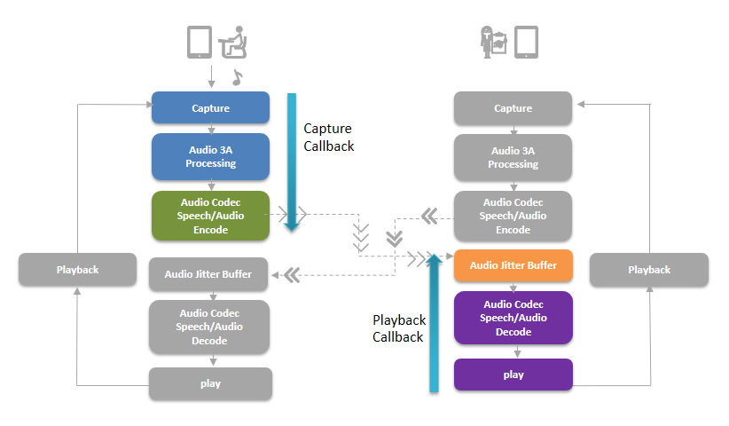 那么一个解决以上痛点稳定运转的音频框架该如何设计?以WEBRTC的音频框架图为例: