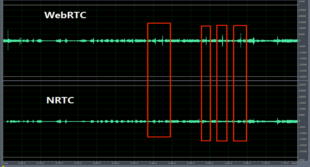 源生webrtc aec VS NRTC 在iphone6p 气音发音下的表现