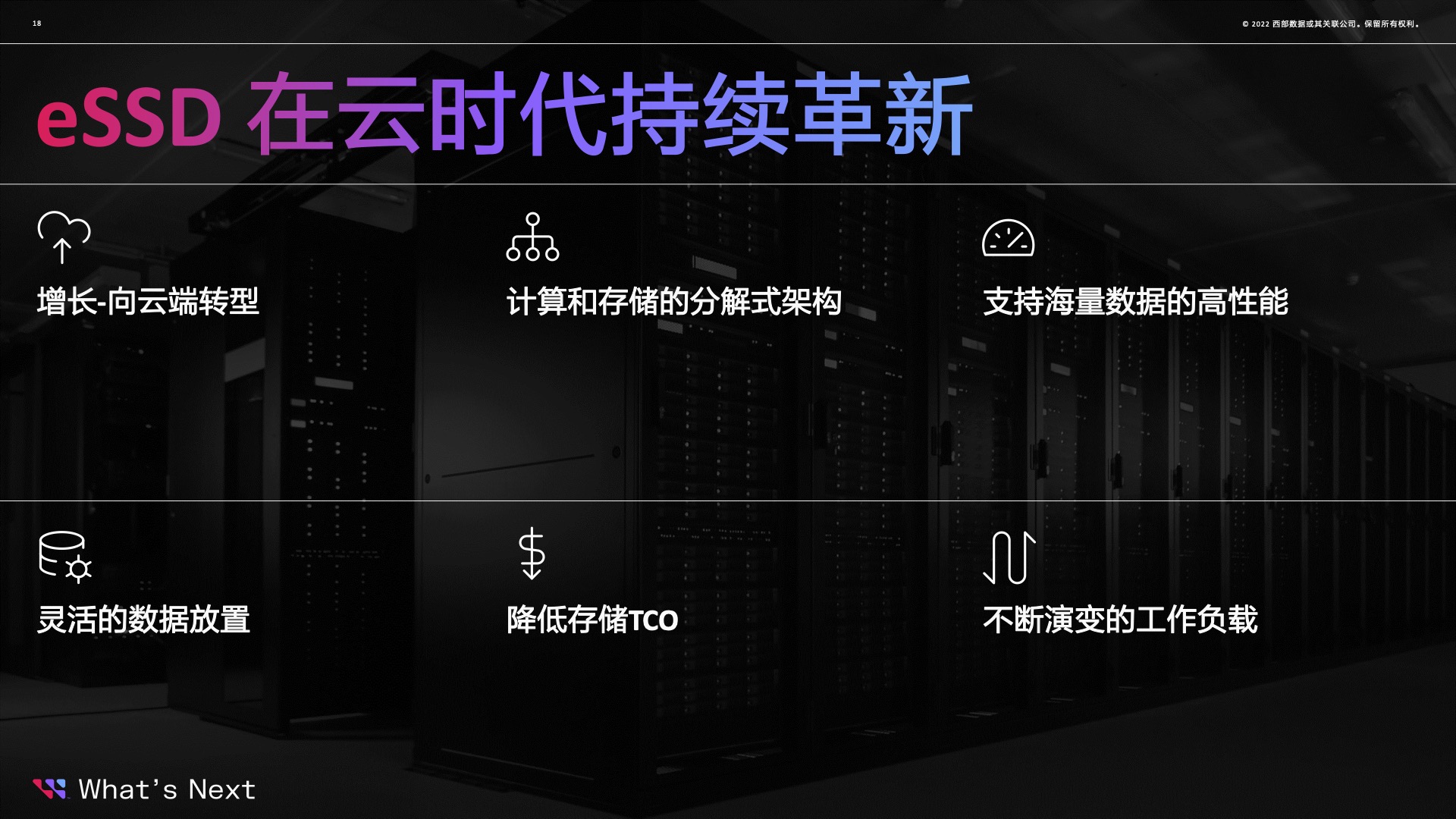 西部数据云正在成为几乎所有业务或任务的关键应用基础,必须确保能够大规模地提供稳定的性能。因此,SSD正逐渐在数据中心占据更大的比重。西部数据公司全新的大容量SSD系列,使云客户有能力以大容量、更低的TCO和更好的QoS一致性来管理、扩展和配置基础设施,支持他们提供灵活的云服务,以适应和扩展我们周围数字世界不断变化的需求。
